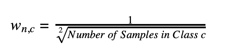 간단히 이야기하면 클래스별 샘플의 역수가 크 클래스의 weight가 된다.