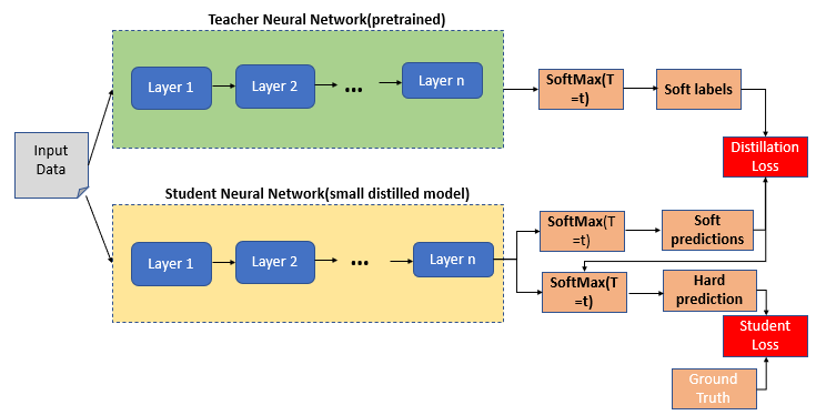 -앙상블이 test accuracy를 높일 수 있지만, 10배이상의 inference time이 발생한다. Low-energy가 앙상블의 문제점이기 때문에 Knowledge Distilation 방법이 제시되었다. Knowledge Distilation 방법은 단순히 개별 모델을 학습하고 앙상블의 output 결과를 매칭한다.